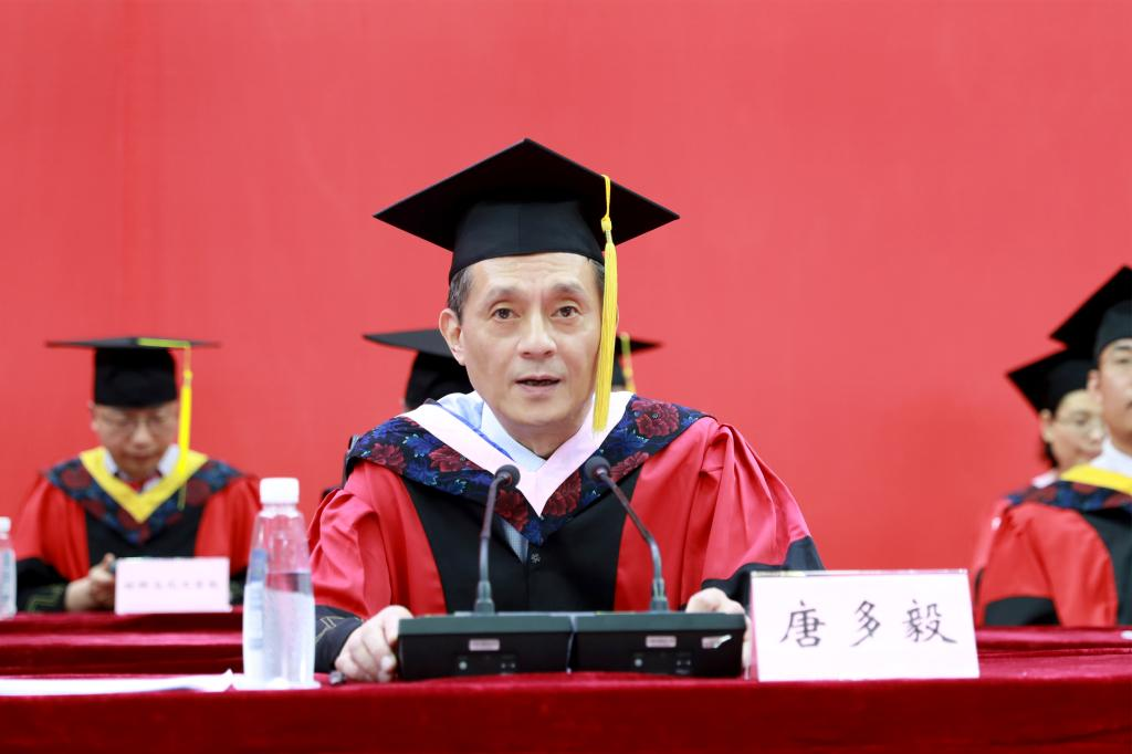 唐多毅主持毕业典礼时寄语全体毕业生要志存高远、直面挑战、脚踏实地、勇于奉献,把母校老师的殷切寄语和谆谆教导化作前行动力,以骄人的成绩回报父母、回报母校、回报祖国,抒写无愧伟大时代的绚丽篇章!