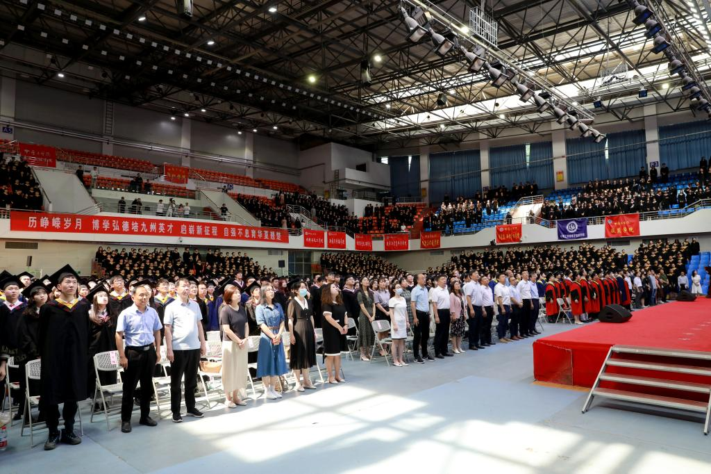 毕业典礼在庄严的国歌声中拉开序幕,全体师生庄严肃立,齐唱国歌,表达对伟大祖国的深切祝福和对母校的深厚感情。