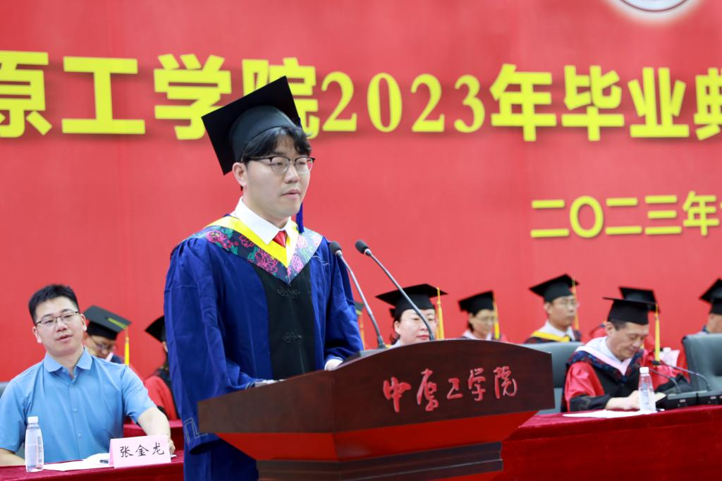 毕业生代表、材料与化工公司研201班王雪涛同学代表全体毕业生发言,回忆在校学习生活的点点滴滴,表达对母校依依不舍之情和对老师们悉心培育之恩。