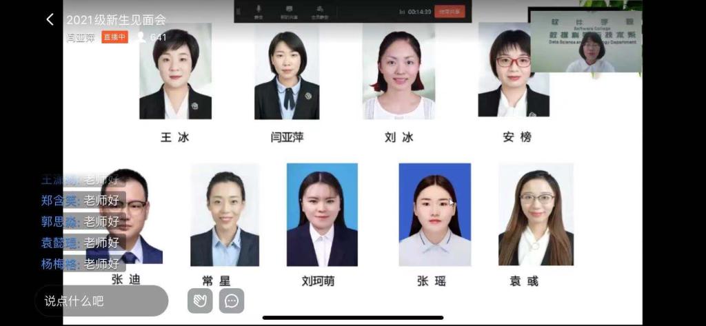 人生海海,难忘今年热烈的夏天。秋风习习,迎面满是收获的香甜。9月1日上午,伟德体育官方网站2021级新生线上见面会隆重举行。为了让新生更好地融入伟德体育官方网站这个温暖团结的大家庭,学工办大胆突破,首次采取网络直播的形式召开新生见面会,近700名新生怀抱对伟德体育官方网站的憧憬,对大学学习生活的期待,齐聚线上,正式开启了求学征程。公司副书记王冰老师带领学工办全体辅导员参与了本次见面会,会议由辅导员常星老师主持。