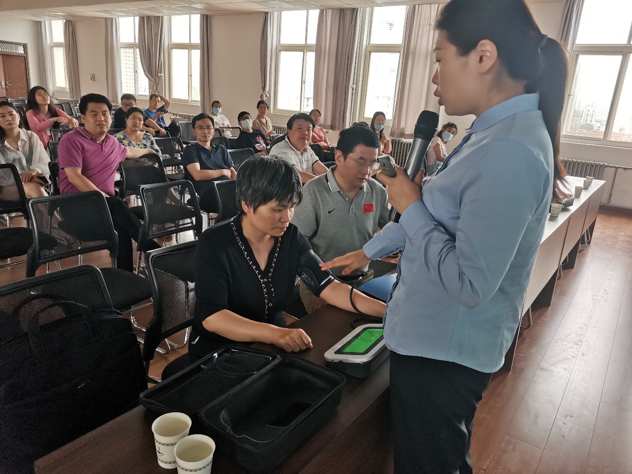 刘主任从突发事故卫生应急处置及紧急医学救护常识、常见流行性疾病及教职工职业病防护、三减三健专项知识三个方面进行讲解,并在现场进行胸外按压教学,为老师测量血压,解答老师提出的健康问题,帮助老师们学习到了安全救护知识,了解预防疾病的重要性。
