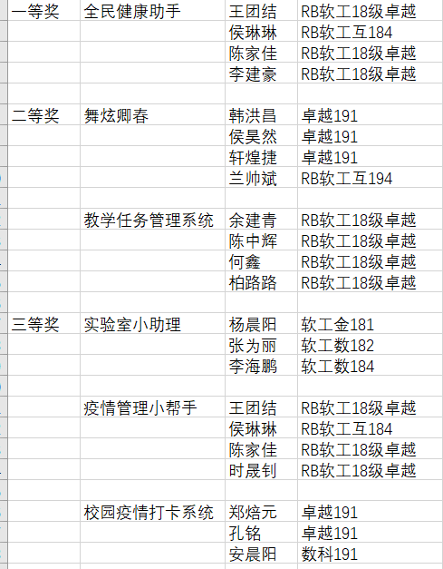 最终,《全民健康助手》荣获本次大赛一等奖,《舞炫卿春》、《教学任务管理系统》获二等奖,《实验室小助理》、《疫情管理小帮手》、《校园疫情打卡系统》获三等奖。