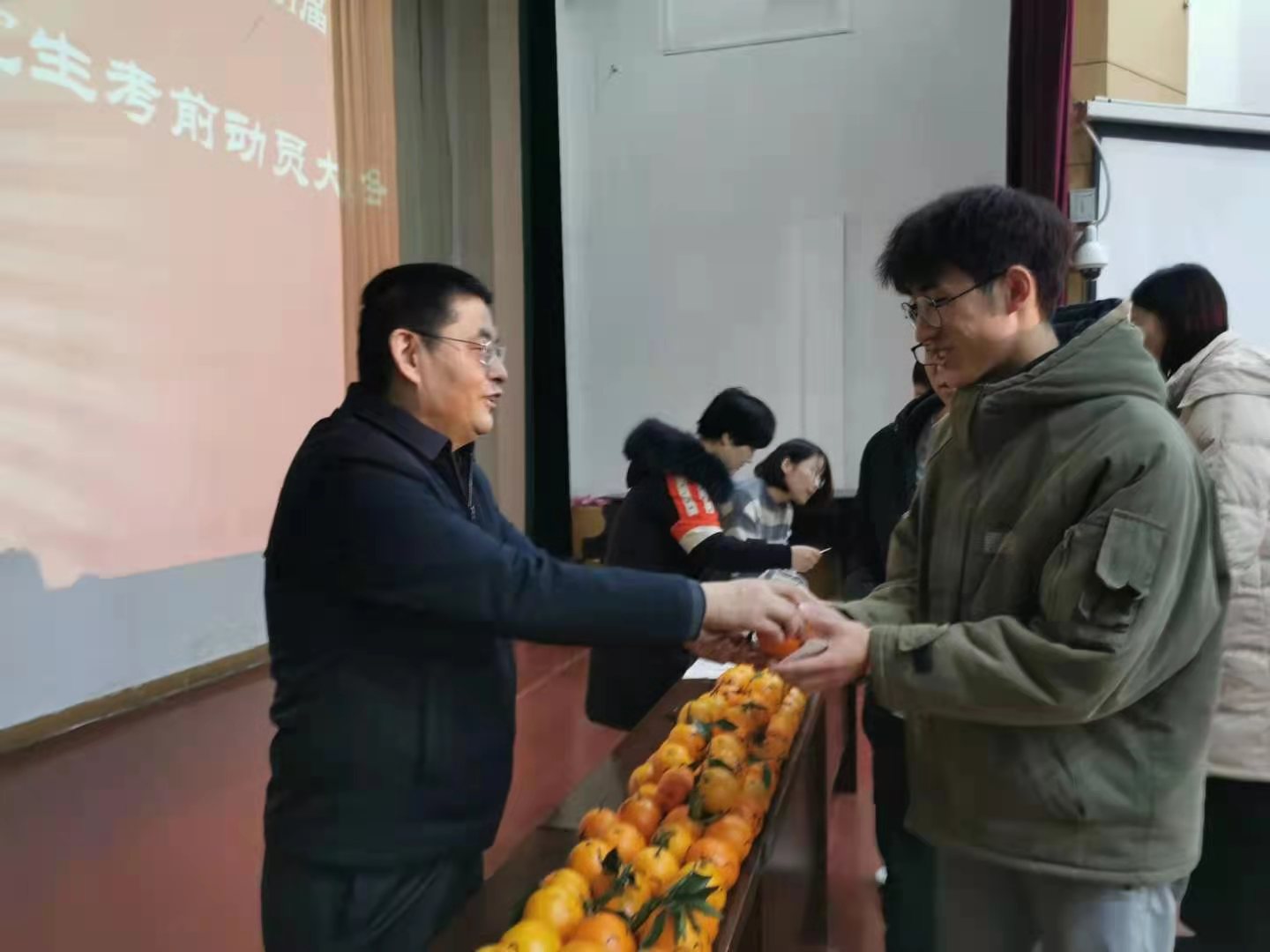 最后的惊喜环节里,李书记亲自为到场的同学们发放爱心橙子,辅导员将为每名学子量身定制的专属“橙”功上岸卡交到他们手中。为了本次动员会,毕业班辅导员当天一大早专门前往超市采买新鲜橙子,寓意成功上岸、一战成硕;“橙”功上岸卡从购买、手写、封蜡,辅导员倾注了无限的爱与温暖。礼物虽轻,但公司对考研学子的关爱之情甚浓;礼物虽简,但因饱含着老师对考研学子的深情祝福而变得沉甸甸。