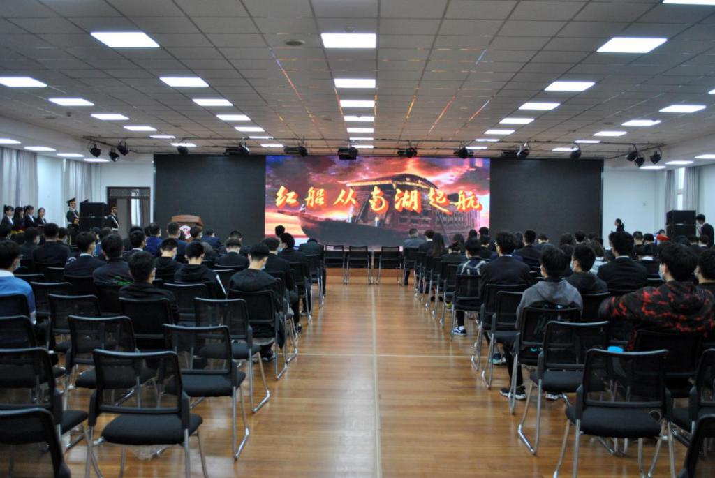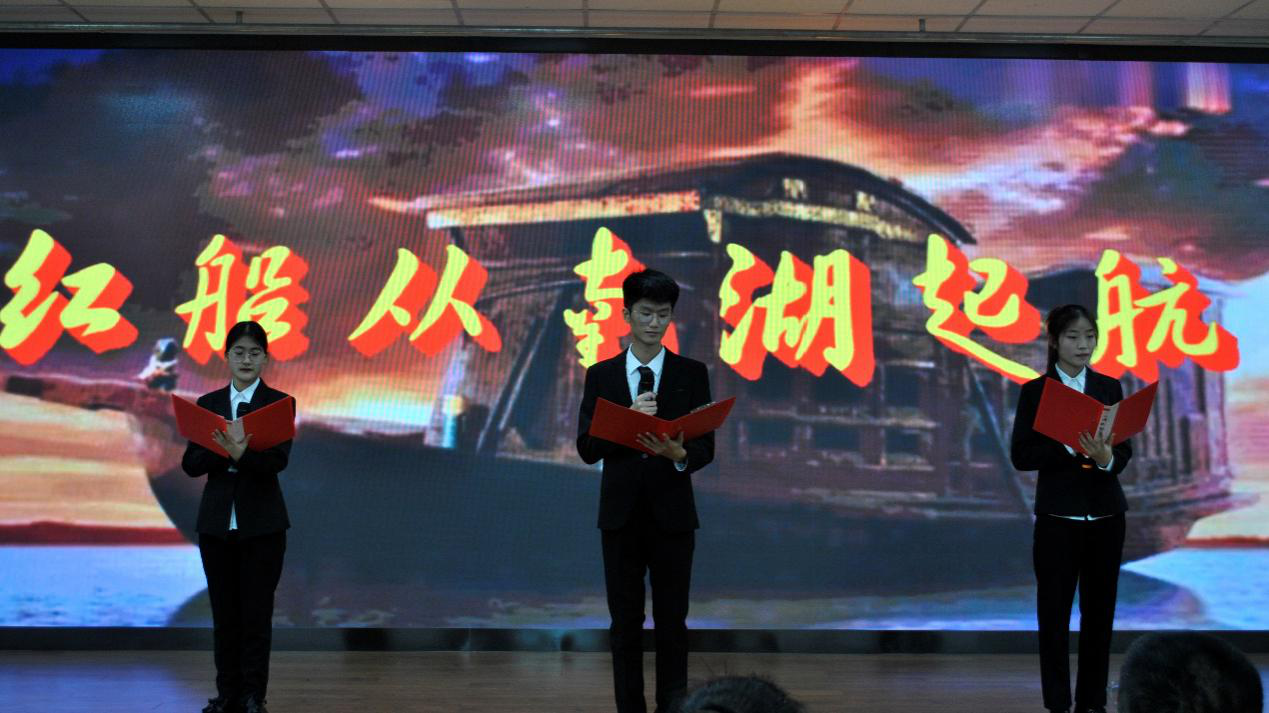 此次活动由软通社殷凡卓同学、盛梦雨同学、曹申同学带来的朗诵《红船从南湖启航》拉开序幕,他们慷慨激昂的朗诵获得了到场观众的热烈掌声。演讲结束,活动正式开始,出国旗、奏国歌,全体起立齐唱国歌行注目礼。
