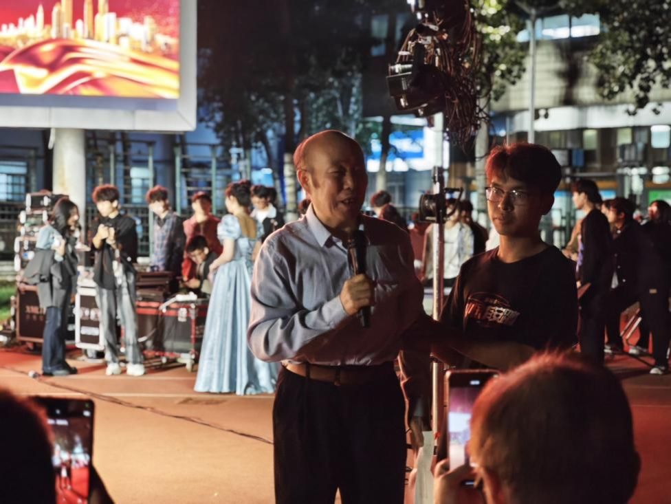 演出间隙公司高校图书馆榜样馆员、河南省文明教师张怀涛教授还现场朗读了他写的诗歌,激励新生要珍惜大学时光,为实现中华民族伟大复兴的中国梦贡献青春力量。