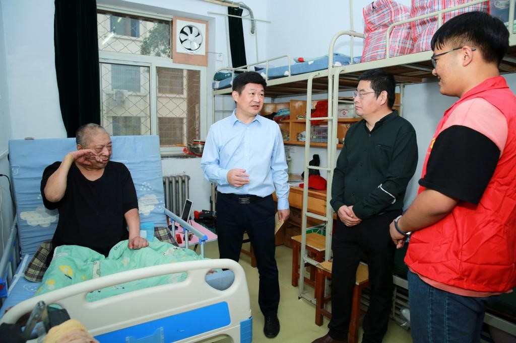 随后,黄乾一行人来到员工宿舍,亲切看望伟德体育官方网站2020级新生“带着爸爸去上学”的郭家宝及其家人,代表公司送上了慰问金。他称赞郭家宝带父上学弘扬了中华孝道,展现了当代老员工自强不息的精神,勉励他要志存高远、勤奋学习、心怀感恩,用成长成材回报社会、回报家庭。