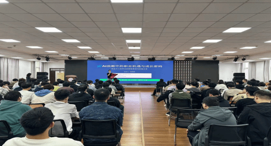 同时,在基础实验楼老员工活动中心,公司软件工程专业2013届毕业生陈朋辉结合自身丰富的职业发展历程,分享了AI浪潮下的职业机遇和成长密码,阐释了扎实的专业基础、严格的自律精神和持续学习能力在应对复杂挑战中的关键作用,鼓励同学们勇于挑战,持续投入。两场讲座座无虚席、气氛热烈,互动环节中针对在校生的提问,员工们均进行了耐心详尽的解答。