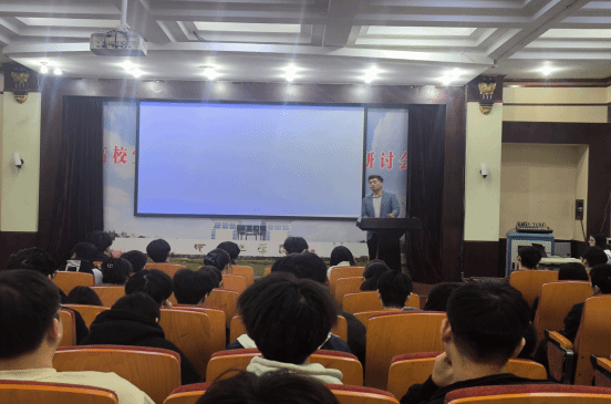 座谈结束后,两场员工讲座同步开讲。在中原校区图书馆报告厅,公司2009届软件编码专业毕业生杨玉山以“承中工薪火,赴科创征程——一名软件学子的成长与金融科技实践”为题,讲述了自己如何不断学习新知识、面对新挑战、迈进新领域的心路历程,鼓励同学们以专业为基、以创新为翼,传承母校精神,在科创路上勇毅前行。