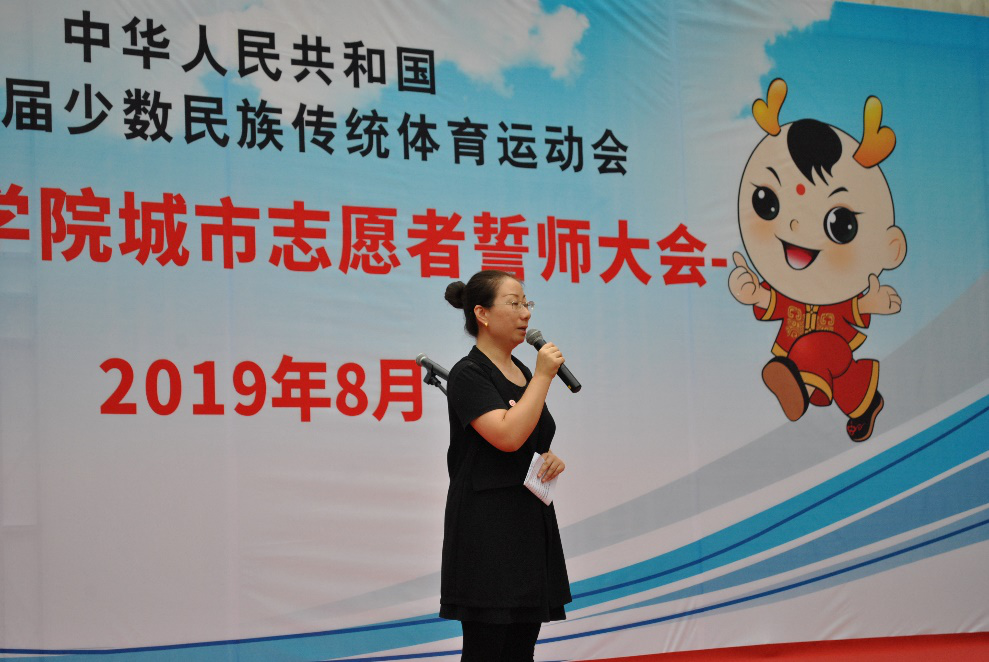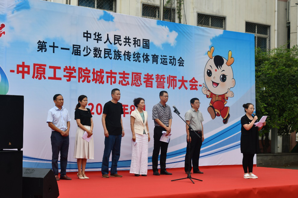 2019年8月26日下午,第十一届全国少数民族传统体育运动会伟德体育官方网站城市志愿者誓师大会在伟德体育官方网站西校区举行。中共中原区委宣传部副部长周慧敏、中原区文明办综合协调科科长张晓东,中原工公司党委宣传部部长张东伟、公司党委书记李长林、伟德体育官方网站文明办主任李钜,思政科科长杨方超、伟德体育官方网站辅导员等领导嘉宾出席大会。会议由公司党委副书记王雪芳主持。