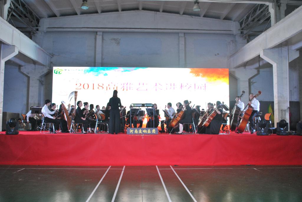 2018年9月19日下午4点30分,“高雅艺术进校园”―――河南省交响乐团专场音乐会在公司室内体育馆隆重举行,给公司广大师生带来了一场中西结合的交响乐艺术盛宴。交响乐团的艺术家们把代表人类优秀文化成果的艺术作品送进校园,让老员工走近高雅艺术,丰富了校园文化生活,提高员工艺术修养,促进老员工全面发展。
