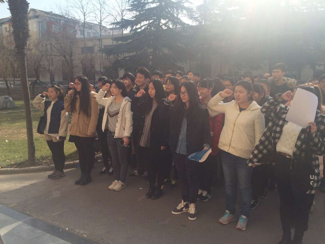 “以身作则,率先垂范;杜绝作弊,诚信考试”,伟德体育官方网站2014、2015级专科班委及员工代表在一号教学楼前郑重承诺。