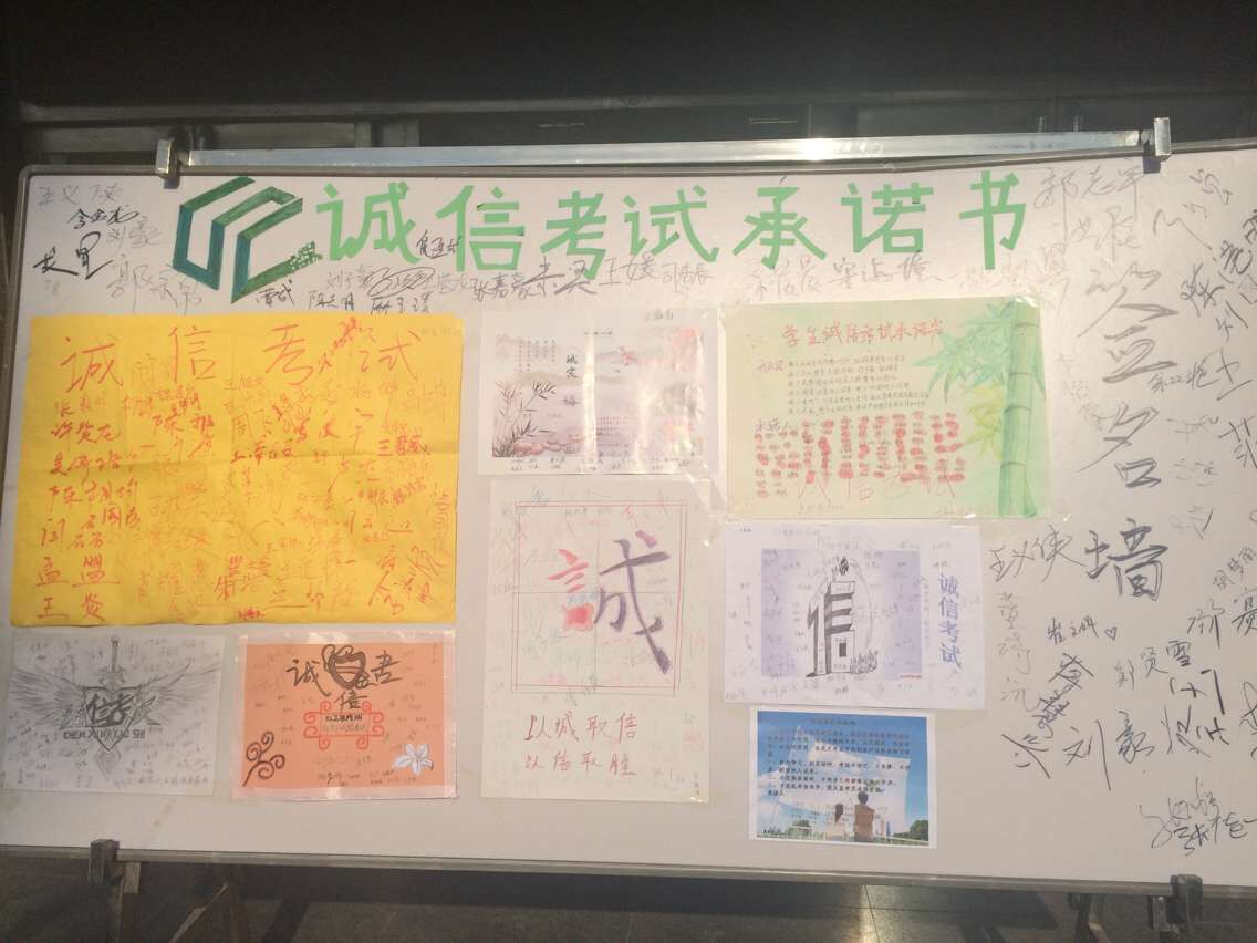 以考风推学风,以学风带考风,营造积极、健康的考试风气是衡量公司各项工作的重要指标。考前宣誓签名活动,旨在整顿考风、建立良好的学风,使同学们以严肃认真的心态面对考试,遵守考试纪律,尊重监考老师,不作弊,不违纪。