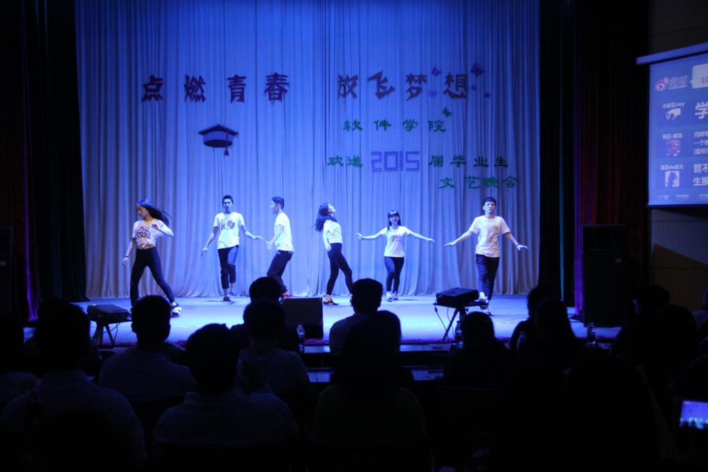 霓虹灯盏点亮礼堂,旋律飞扬纵歌青春的梦。此次文艺晚会涉及歌曲、舞蹈、诗歌朗诵、古筝演奏以及话剧等多种类型。晚会上,一场充满青春浪漫气息的歌曲《我好想你》拉开了欢送毕业生文艺晚会的帷幕。之后街舞《see you again》热烈的舞蹈,激昂的音乐,顿时点燃了全场气氛。由南区老员工艺术团所带来的民舞串烧让观众在听觉与视觉的享受中体会古典美的神韵,领略民族舞的魅力。相互激荡的音符,扣人心弦的旋律,一曲曲师生歌曲,既表达了毕业生们对老师、对母校的依依不舍,也透露出老师们对员工的满心期待和厚望,