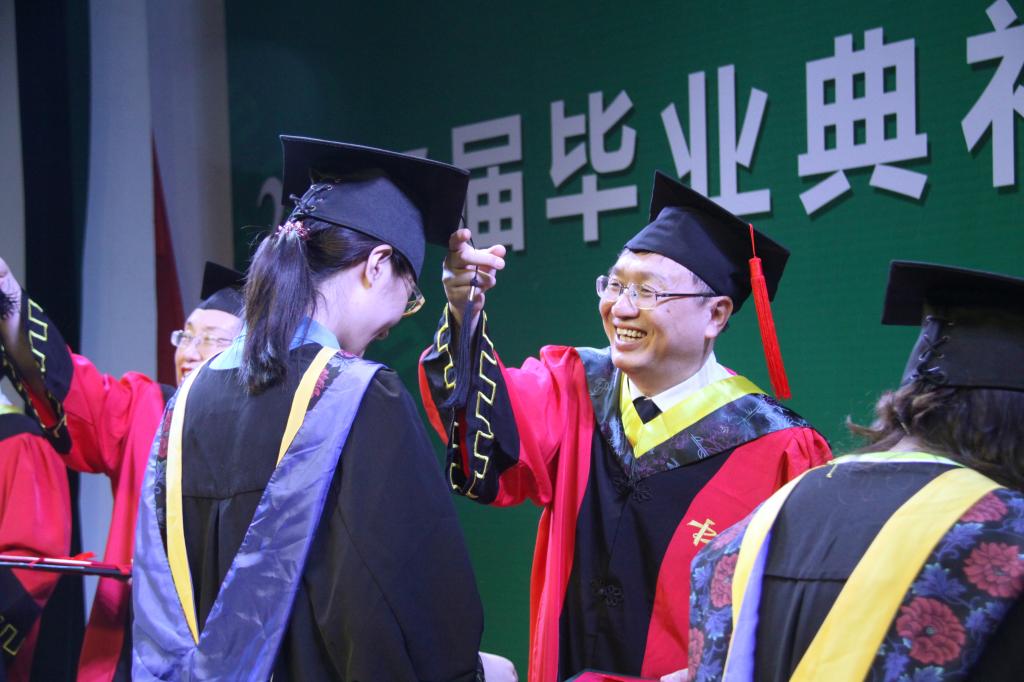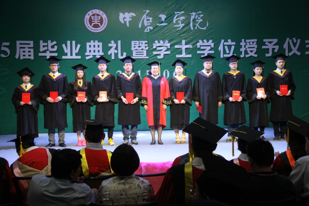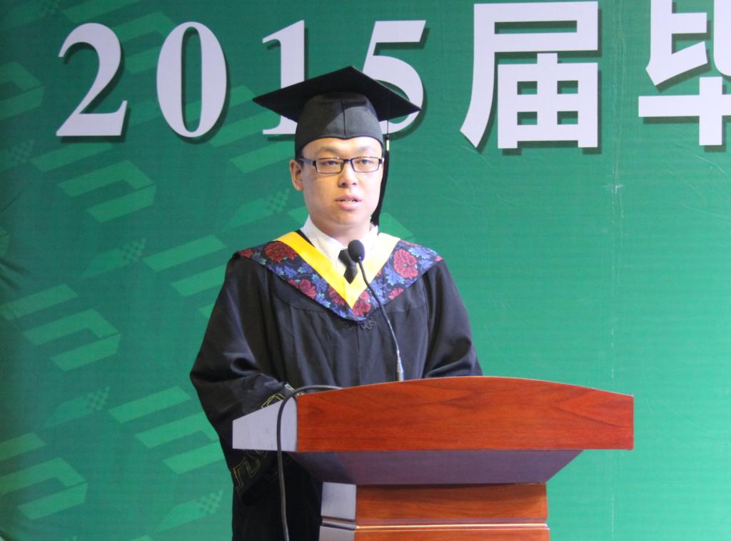 毕业生代表张朝同学在发言中,诚挚感谢母校及恩师四年来的辛勤培育,表示将永承中工“博学弘德,自强不息”的校训精神,勇敢面对未来的困难和挑战,自强不息、永不言弃,取得人生新辉煌。