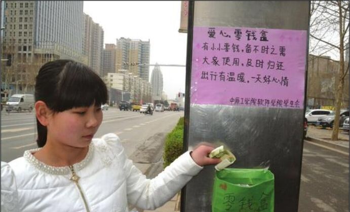 由于原来手工做的零钱盒子容易破损,在公司和公司领导与老师的鼓励与帮助下,伟德体育官方网站员工会成员于4月13日18点携带新做的一批亚克力材质的零钱盒子,再次到中原路沿线多个公交站台进行了爱心零钱盒的增补,并且每个零钱盒子都放进了5元的启动资金。资金的来源为员工会在校园里设置的“水 诚信驿站”,同学们需要纯净水时,自觉投1元钱到手工制作的1元爱心盒里,便可取走一瓶纯净水,诚心驿站的所有收入都作为爱心零钱盒中的启动资金。