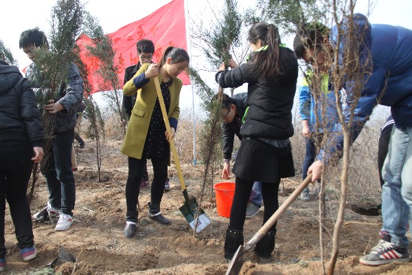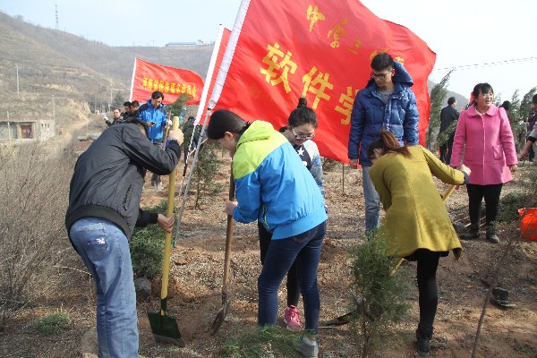 3月11日上午9点,伟德体育官方网站学工办安榜、陈旭茹老师带领伟德体育官方网站30名员工党员和干部抵达荥阳崔庙镇义务植树区,植树区内已有许多志愿者在热火朝天地参加义务植树活动。同学们跟随老师有序加入植树活动行列中,大家手持铁锹,干劲十足,将一棵棵充满生机和希望的树苗植入林区,种完树后同学们又为它们浇灌生命之水。现场气氛热烈,大家那份对绿色的呵护之情令人感动。