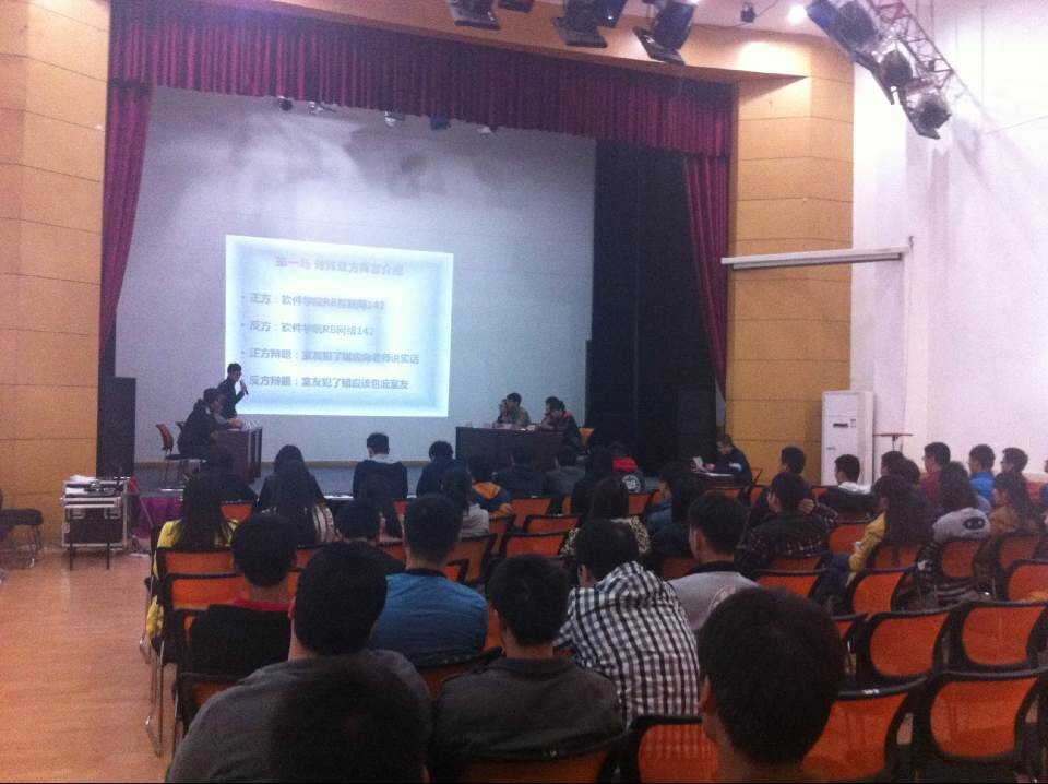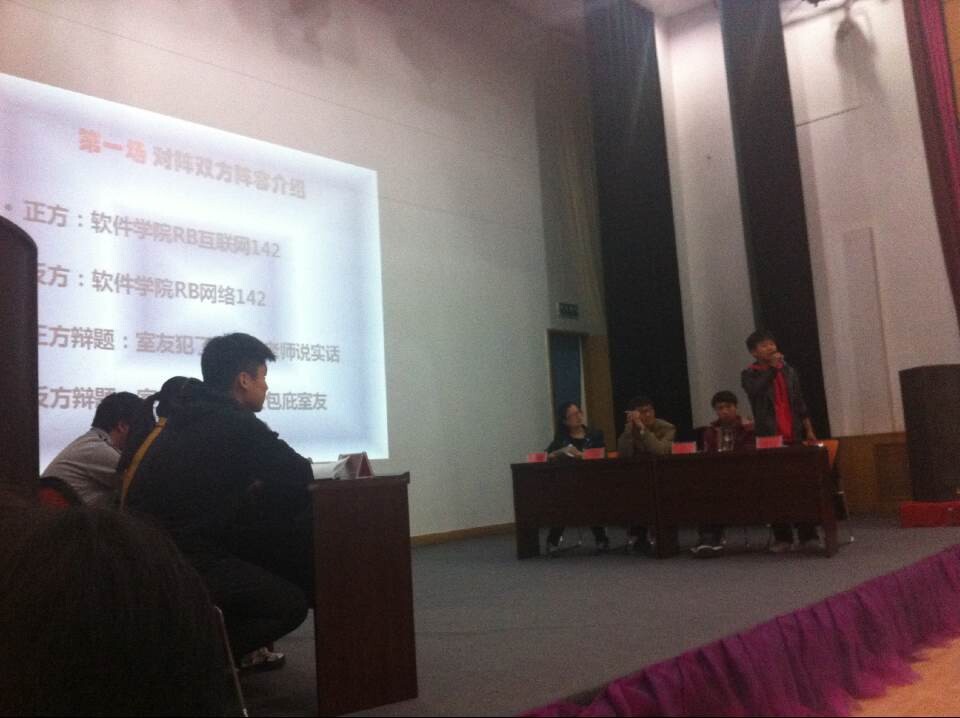 11月7日中午,由伟德体育官方网站普通话协会“每周一辩”第一场在多功能厅顺利举行。辩论双方分别为RB软工互142班和RB软工网142班。此次辩论赛辩题为“室友犯错应该告诉老师,还是包庇室友维护哥们儿义气”,最后RB网络142班取得了胜利。