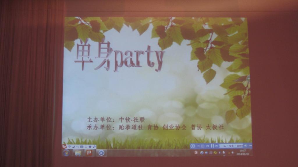 2014年11月10日晚上7点半,由伟德体育官方网站社团联合会主办,跆拳道、青年者志愿者协会、创业协会、普协、太极社承办的“单身派对”在多功能厅隆重举行。员工们都积极参与其中,表现出了极高的兴趣。