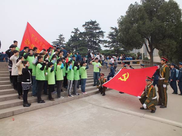 活动在浓烈的爱国氛围中拉开了序幕。首先,我公司党员及预备党员在烈士碑下宣读入党誓词,铿锵有力。同学们怀着对先烈的敬重之情,在老师的带领下拜谒了吉鸿昌英雄墓,并向烈士们深深弯腰鞠躬来表达沉痛的哀悼。紧接着,同学们秩序井然的参观了烈士陵园。在一个个的墓碑前,同学们纷纷驻足瞻仰、默哀。最后,同学们默默献上自己做的小白花,用最传统的方式向为了革命而牺牲的英雄烈士表达自己无限的敬意和哀思。