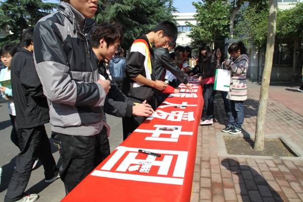20111025日,伟德体育官方网站举行了拒绝冷漠,传递温暖,大爱中国大型签名活动。同学们积极参与,在条幅上郑重签上了自己的名字,以表达自己弘扬中国传统美德、唤起社会大众爱心的决心。