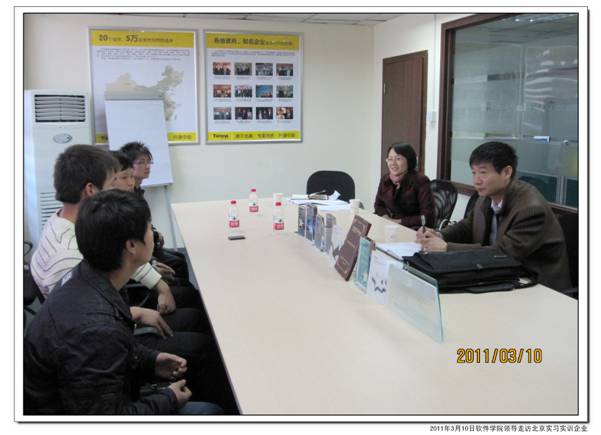 3月10日,公司党总支书记李廷利、副经理郭基凤一行来到北京,对北京的实习实训基地进行调研。期间走访了在北京达内科技、北京博看文思科技有限责任公司、北京普科国际伟德体育官方网站实训的部分09级员工。了解了员工们的学习和生活情况,与实训企业共同商讨实训质量监控、指导老师质量评价、员工心理状态跟踪和反馈等问题,并签订了实习实训协议。