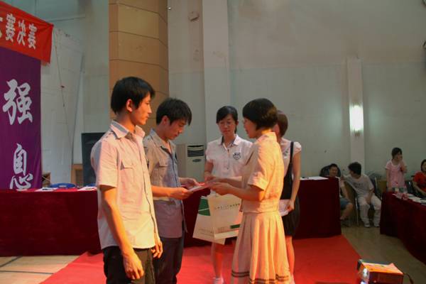 决赛分为必答环节、风险环节、抢答环节。内容涉及硬件、软件、算法、操作等方面的知识。比赛现场,选手的激烈比拼、观众的踊跃参与使比赛扣人心弦、一次次把比赛推向高潮。经过激烈的角逐,网络091班吴玉燕同学夺得桂冠,大赛还评出二等奖2名、三等奖3名。车战斌经理、郭基凤副经理为获奖选手颁发了证书和奖品。