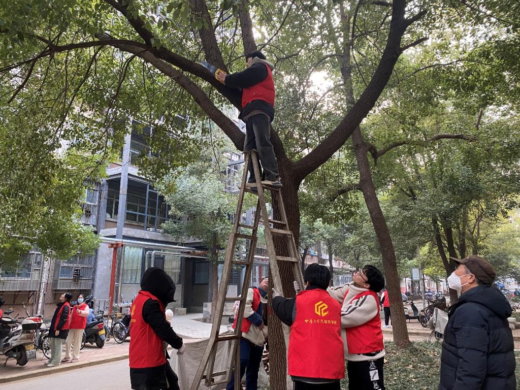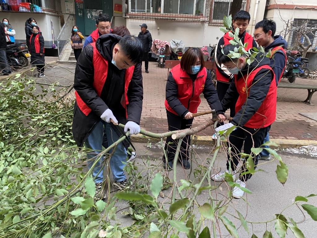 活动现场,志愿者们身着红色马甲,手持修剪工具,对社区内的树枝进行了精心修剪。同时,他们还清理了地面的落叶和散落的树枝,确保社区环境的整洁美观。此前,小区经历了一场大雪,很多树木出现了严重的倾斜甚至倒塌,存在一定的安全隐患。针对这一问题,公司师生积极行动,在社区工作人员的帮助下有的同学将树干或树枝锯掉,有的负责将砍掉的树枝搬运到指定地点,还有的负责清扫地面,在连续工作三个小时后小区道路两旁的树枝全部清扫干净,树上的枯树枝也都进行了修剪处理。