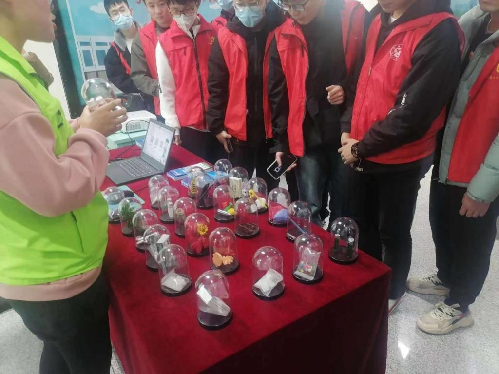 接着,禁毒社工向同学们展示了几种常见的毒品样品,大家在桌子旁站成一排,眼光都落在瓶子里奇异的物品中,无法想象会有谁愿意接触这样危险的物品。通过近距离观察毒品的面貌唤起同学们对毒品危害的重视,增强安全防范意识。
