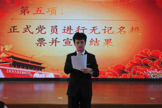 接着,由入党介绍人逐一总结了在以上同志在预备期间的考察和教育情况,评议其是否具备接收为党员的条件,正式党员采用无记名的方式对每个人是否具备入党条件进行了投票。经支部研究同意,确定韩雨洋等9名同志按期转为中共正式党员。