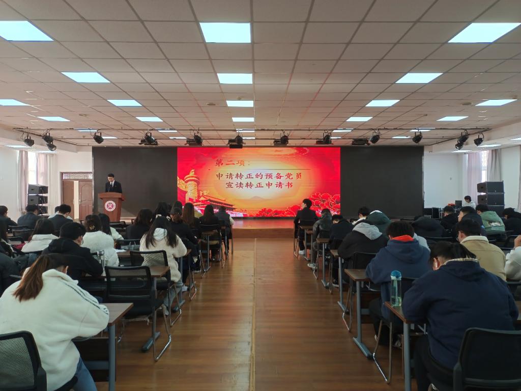 伴随着嘹亮的国歌,大会拉开了序幕。本次大会讨论了韩雨洋、张豫洁等九名预备党员的转正问题,每个人依次上台宣读了转正申请书,汇报了预备期中自己在思想上的成长,学习上的进步以及生活中的努力等各方面的情况,他们还积极指出了自己学习和工作中的不足,同时表达了自己成为正式党员的强烈愿望。
