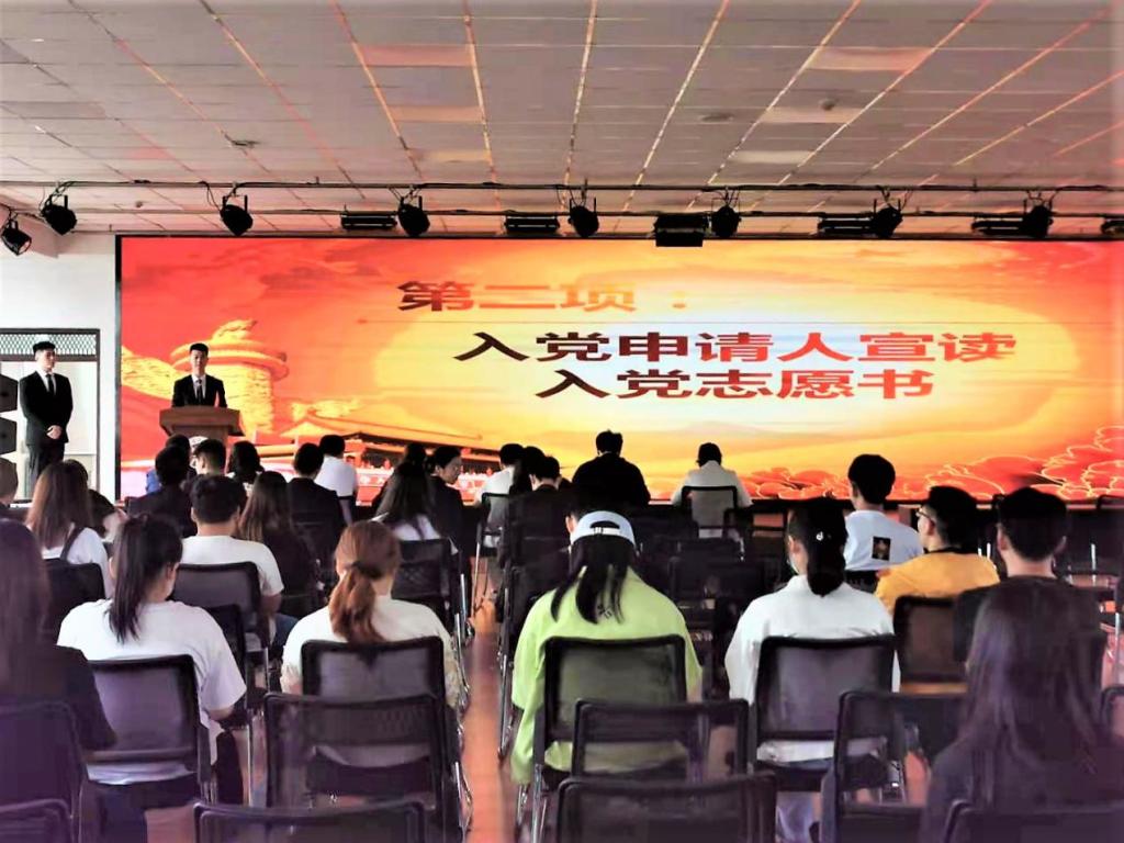 支部书记安榜同志带领新党员在党旗下进行庄严宣誓,洪亮的宣誓声展现了他们的坚定的共产主义信念与入党决心。