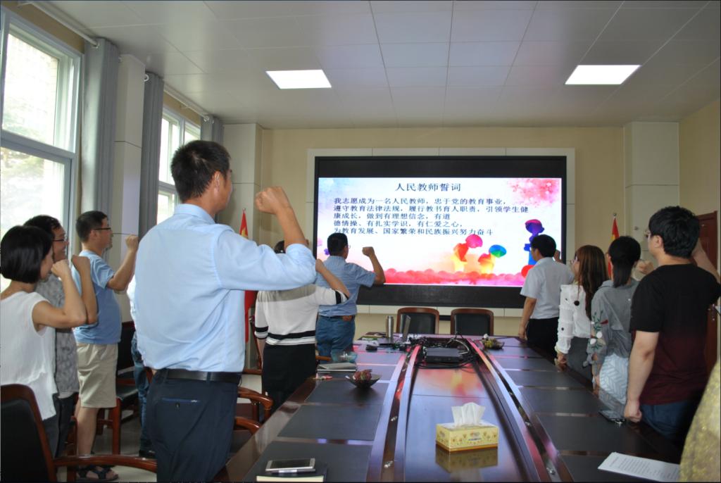 此次活动在全体教师宣誓教师誓词中结束。由车经理进行领誓:“我志愿成为一名人民教师,忠诚党的教育事业,遵守教育法律法规,履行教书育人职责,引领员工健康成长,做到有理想信念、有道德情操,有扎实学识、有仁爱之心,为教育发展、国家繁荣和民族振兴努力奋斗。!”