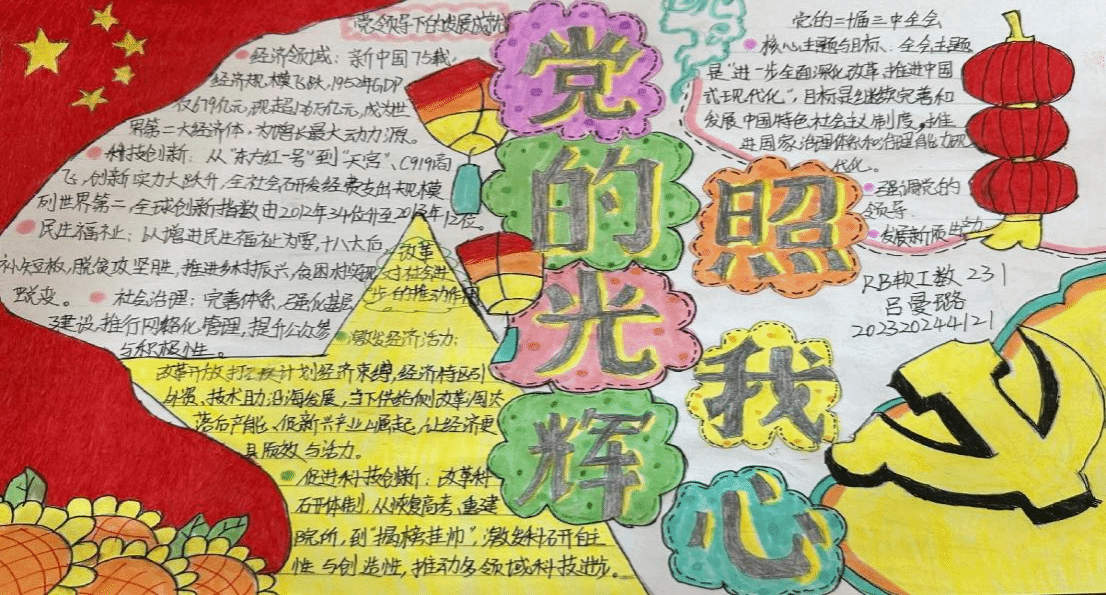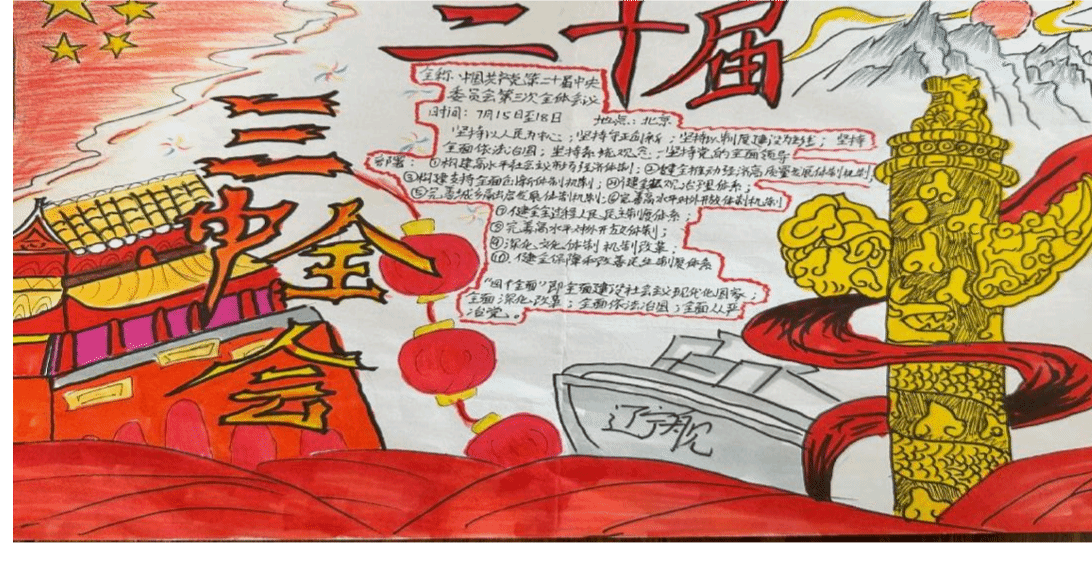 同学们围绕活动主题,精心设计版面,挑选鲜艳的色彩,以饱满的热情和自己对党的二十届三中全会的理解绘制成一幅幅内容丰富、主题鲜明的作品。手抄报中既有对祖国辉煌历史的回顾,也有对新时代中国发展的展望,充分展示了党支部成员对祖国的深厚感情和美好祝愿。