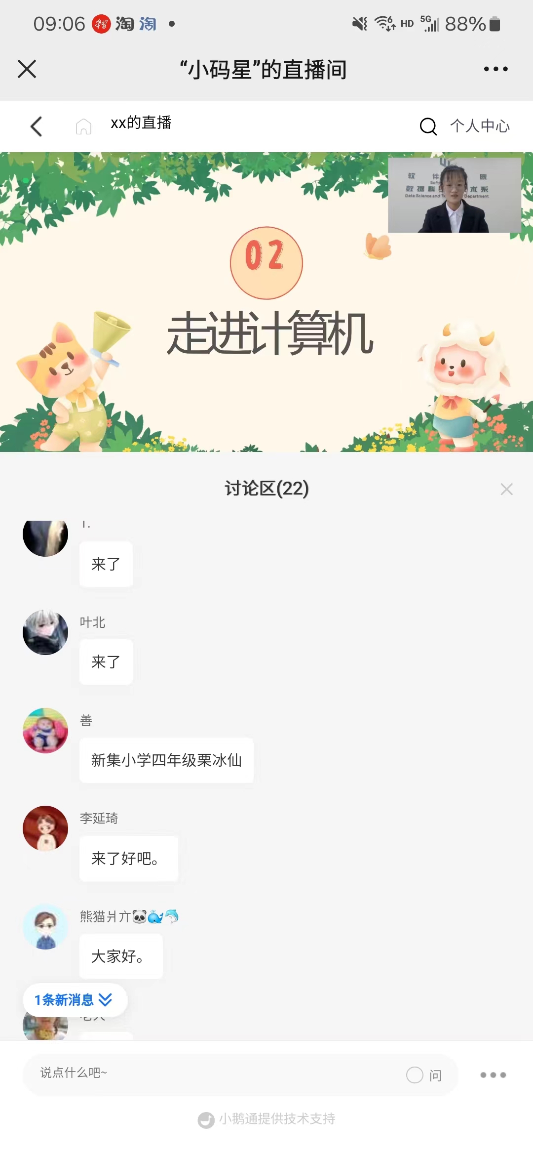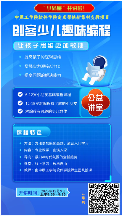 科技承载梦想,创意始于少年。本次活动以“小码星”直播间的形式向新集村中小员工开设科技类的讲座,项目全部为公益课程,旨在激发中小员工对科技的兴趣,提高信息素养水平,科普计算机小知识,学习编程语言、提高计算思维、培养创造能力、拓宽未来视野,培养人工智能时代下的科技少年,为实现科技强国,筑起梦想未来。