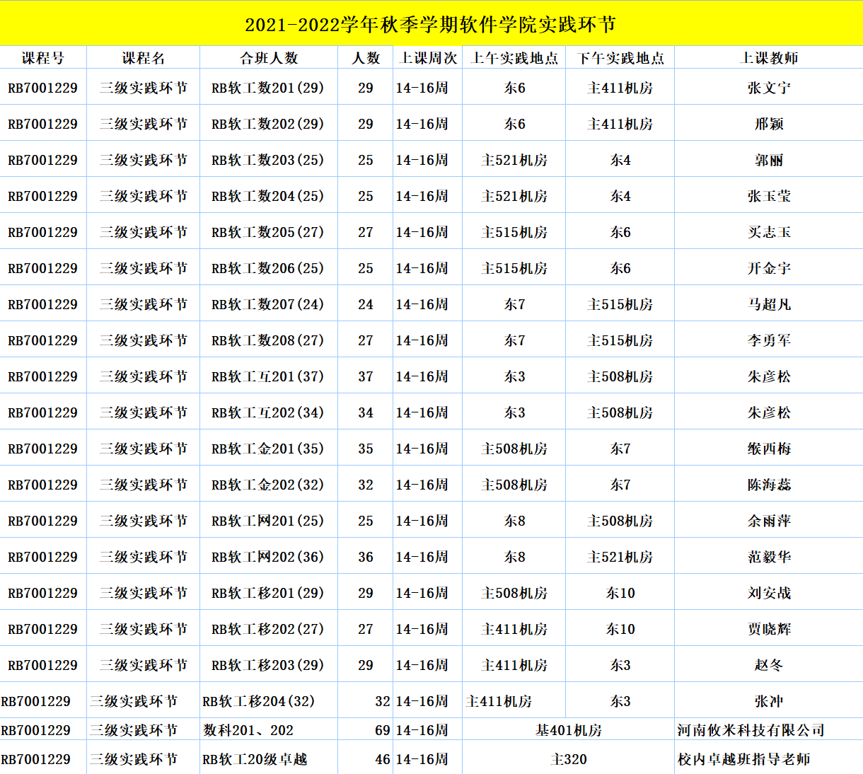 当前位置: 首页 >> 实践教学 >> 集中实践 >> 正文 2021-2022学年秋季学期实践课题安排 发布日期:2021-12-01 来源:伟德体育官方网站 点击: 2021-2022学年秋季学期实践课题安排,如下图所示: 2019级软工实践二安排: 2020级三级实践环节安排: 上一条:2024-2025学年秋季学期软工实训安排 下一条:2020-2021学年春季学期实践课题安排