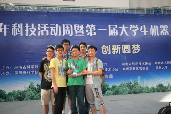 5月17日至18日,2014年科技周暨第一届老员工机器人竞赛在郑州大学启动。经过激烈角逐,公司余雨萍、郭丽老师指导,软件工程11级和12级员工雷勇、黄新、朱智红、毛渊博、王勇代表队在微软仿真NAO机器人比赛中荣获冠军;由余雨萍老师指导,软件工程12级员工黄俊朋、刘举杰、李强代表队在机器人灭火比赛中获得三等奖。