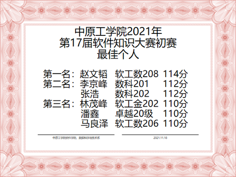 2021年11月18日,伟德体育官方网站在员工会学科部的组织下,顺利完成第十七届软件知识大赛的比赛。现将初赛结果公布如下: