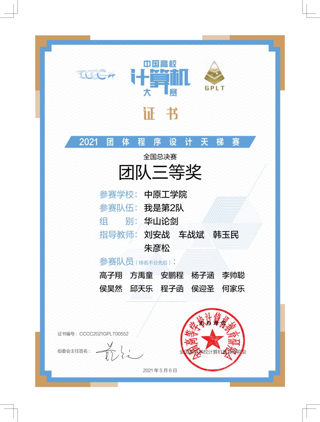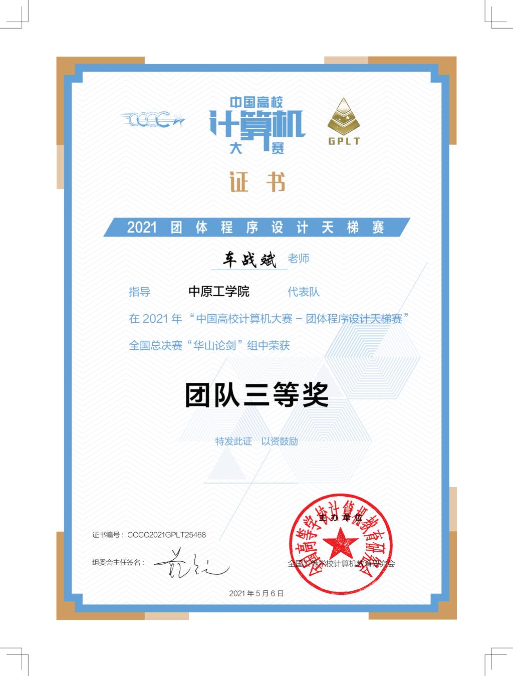 第六届中国高校计算机大赛团体程序设计天梯赛全国总决赛于4月24日在线上举行,公司共派出三个代表队参加比赛,最终由公司车战斌、韩玉民、刘安战、朱彦松老师指导的,由公司员工组成的伟德体育官方网站第2代表队以1726分,获得华山论剑组全国团队三等奖、河南省团队二等奖的成绩。公司另外两个代表队,分别获得了河南省团队三等奖和成功参赛奖。