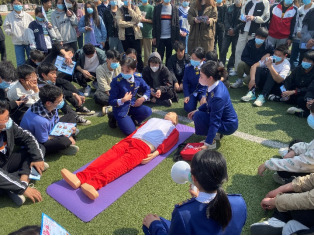 活动开始,地铁工作人员首先为现场同学介绍郑州地铁4号线、5号线的游玩攻略,邀请同学们走出校门感受郑州的春日风景。接着,向大家宣传了“在校老员工免费乘车”优惠活动内容,详细讲解了App的使用方法。活动最后,工作人员向在场师生科普地铁车站应急救护装置配置,利用日常训练所使用的练习道具和急救设备AED自动除颤仪装置,一边操作一边讲解。讲解过后,又邀请现场同学进行练模拟演练。