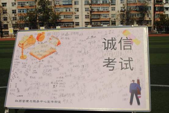 宣誓完毕后,同学们有序地在诚信面板上签下自己的姓名,体现了同学们诚信考试的决心和魄力,同时也抵制了不正之风的侵蚀,为此次诚信考试宣誓活动画上圆满的句号。