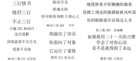 活动一经发出,就吸引了大量同学进行投稿,社团管理服务中心秉承着公平、公开、公正的原则,审核了所有参赛作品。经初步筛选之后,十位同学的作品脱颖而出,之后由全体同学在微信公众号进行投票,推选出最终的获奖作品。经过三天的激烈投票,数科202王政杰荣获一等奖,卓越201杨珣玓和RB软工移203李甲获得二等奖,RB软工数202张巍耀、数科211张金垚和RB软工数212高景涛获得了三等奖。