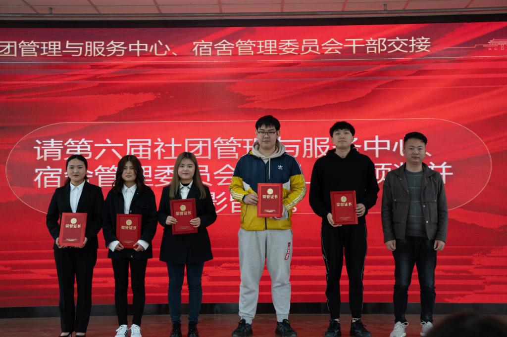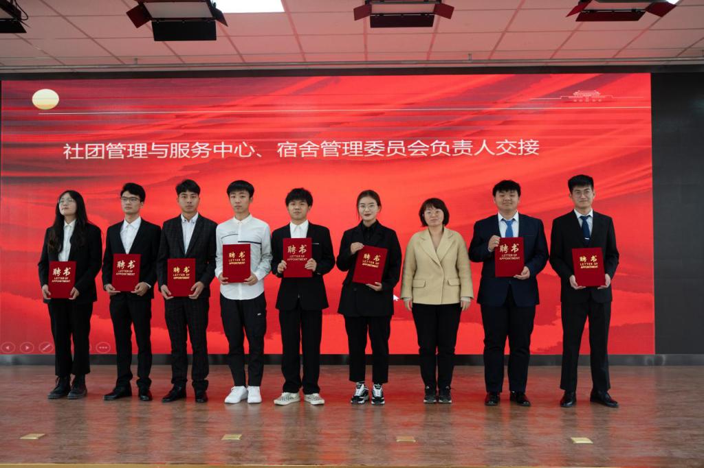 刘欢老师宣读第六届优秀社团管理与服务中心、宿舍管理委员会干部名单、负责人名单并为第六届干部颁发荣誉证书,刘欢老师感概到:“今日,你转身沧海,离开了你们所热爱的社团管理服务中心,而它仍静守天长,蓬勃生长,感谢你们的付出。”。安榜老师宣读第七届社团管理与服务中心、宿舍管理委员会干部名单、负责人名单,并为第七届干部颁发聘书,安榜老师寄语到:“今日,你们就要走出上一届引路人的庇护,愿你们不忘初心,带领社团管理服务中心走向更辉煌的明天。”。