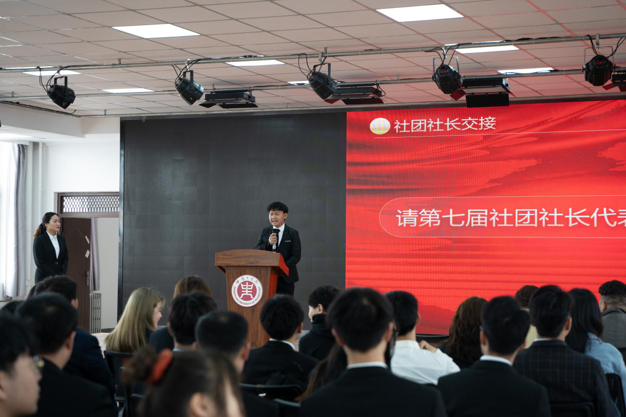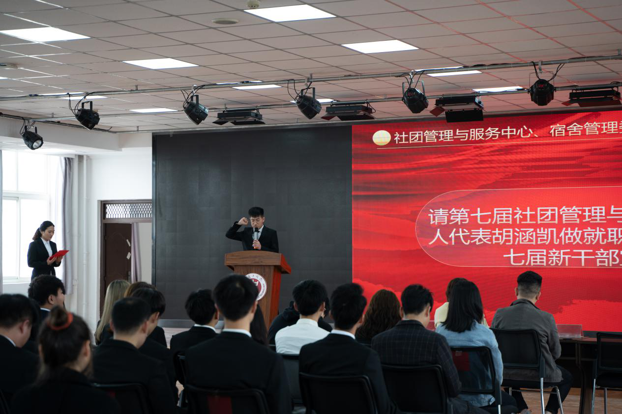 社团管理与服务中心负责人代表胡涵凯做就职演讲,并带领第七届新干部宣誓。