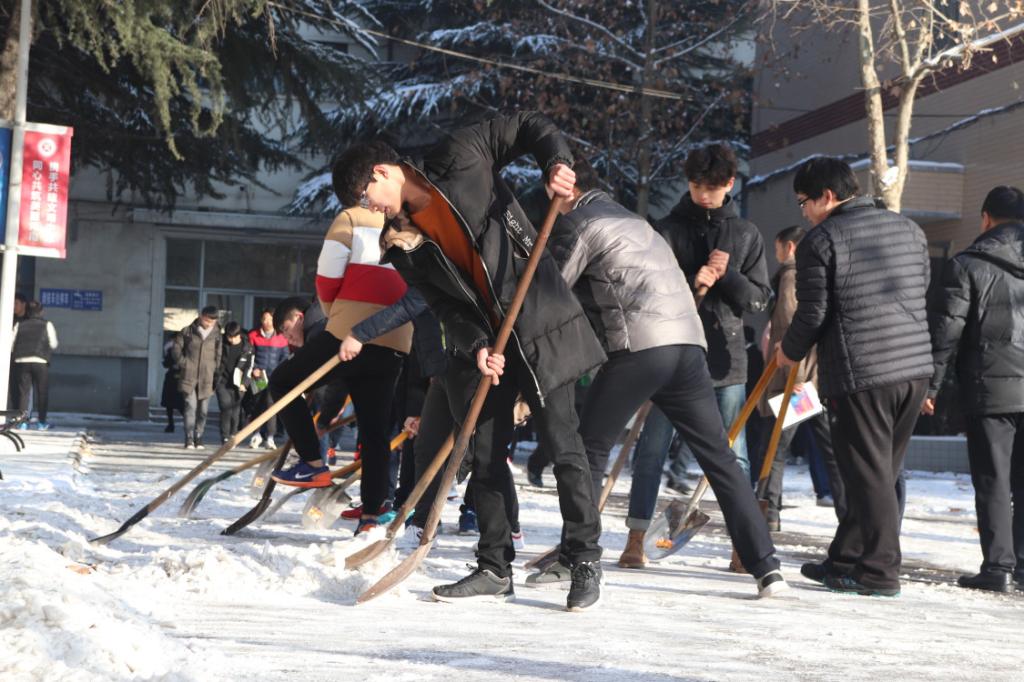 撸起袖子加油干,各位员工干部热情高涨,不惧严寒,挥舞雪铲,齐心协力,把公司道路上的积雪铲除,为公司师生和过往车辆开辟了一条温暖的通畅之路。