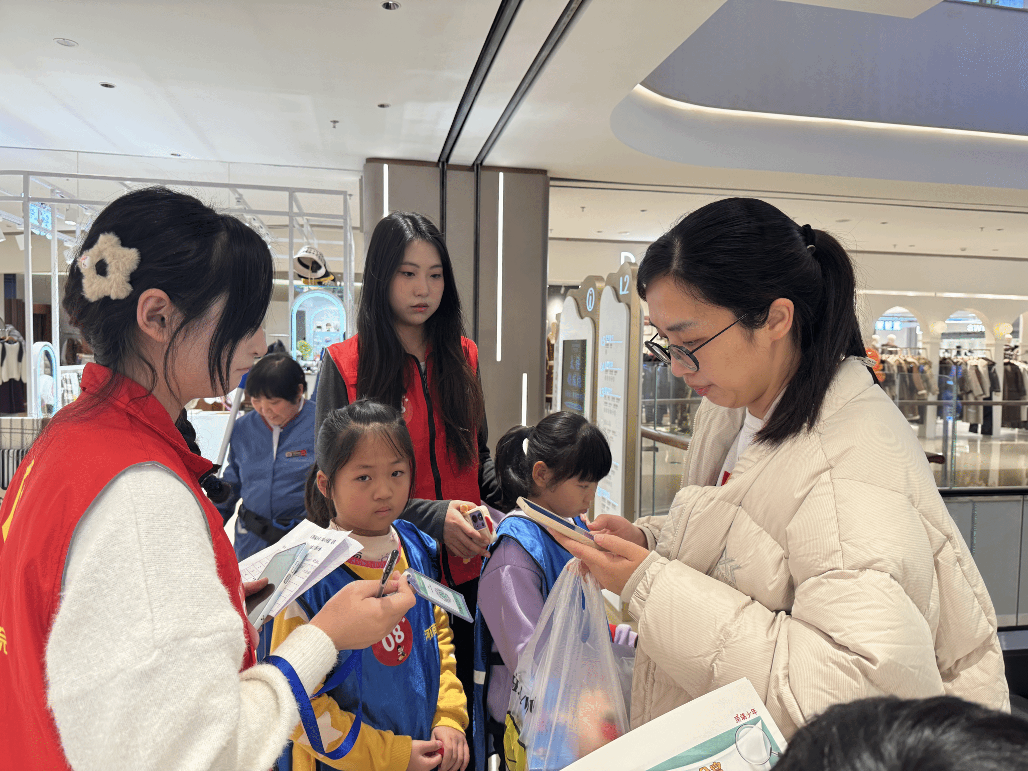 活动开始后,志愿者们带领12组小记者,穿梭在川流不息的人群中,用真诚与热情向过往行人诉说着公益的意义,共同进行公益义卖。每一份报纸都如同一座桥梁,不仅传递着文字与信息,更满载着志愿者们对山区儿童深深的关爱与温暖。