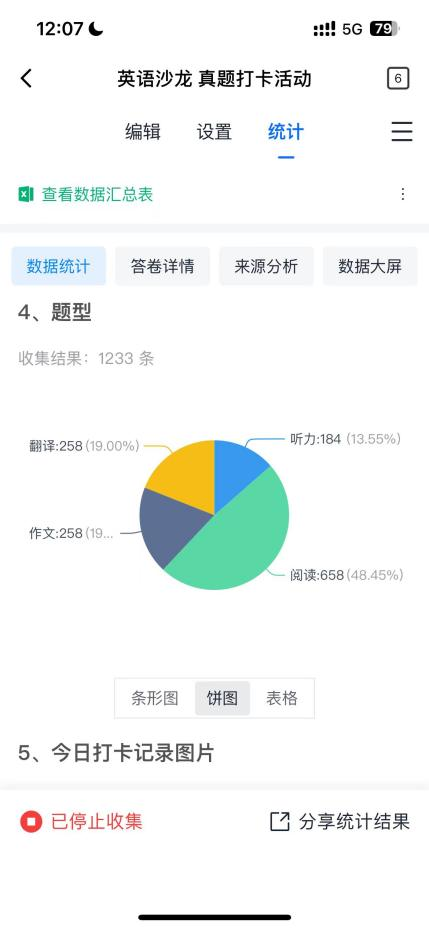 活动内容依据大学英语四级考试大纲要求和历年考题趋势,按照试题类型分别精选180个试题,每个题型设置为一个打卡任务。参赛者通过每天打卡答题活动,达到熟悉题型、巩固知识、强化记忆之目的,成绩优秀者还可以获得奖励。真题打卡如火如荼地开展,共有超过400名同学扫码入群,打卡次数达1400余次。一张张照片检验同学们刻苦备考的学习成果,一次次打卡证明同学们努力冲刺的备考决心。