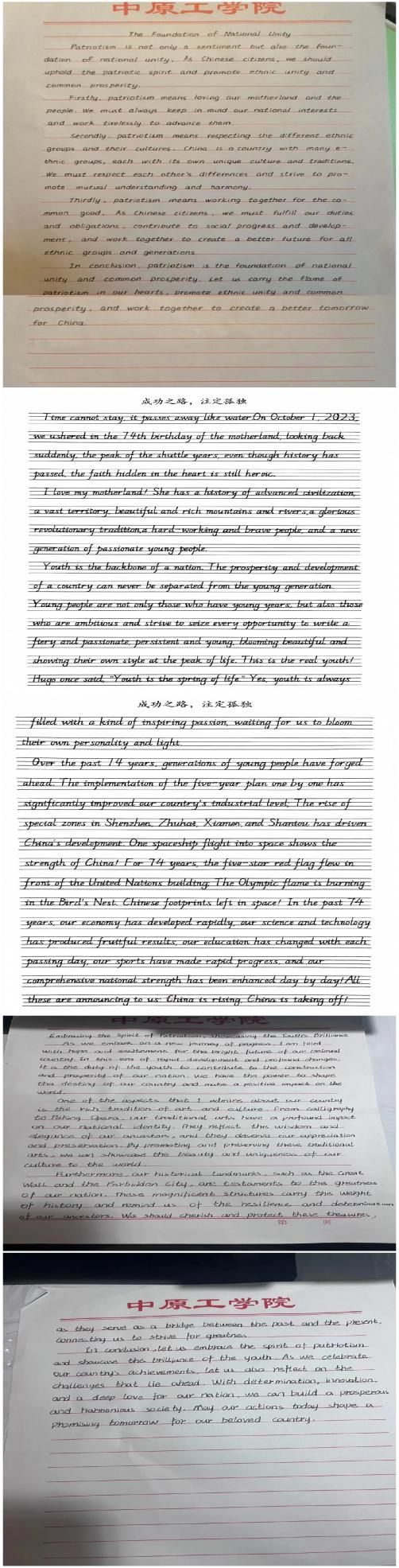 征文活动的成功举办,不仅提高了理工科员工的英语写作水平,也增强了他们的爱国意识,为英语教育与爱国主义教育的深度融合奠定了坚实基础。此外,活动还得到了英语教师和辅导员的大力支持,他们表示将以此次活动为契机,为培养具有国际视野和爱国情怀的新时代老员工贡献力量。