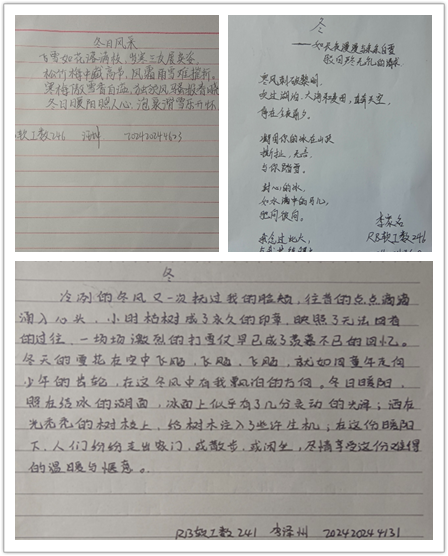 比赛自11月19日启动报名以来,同学们积极报名,参赛选手紧扣主题,以多样的视角诠释冬季的凛冽与温婉,用细腻的笔触勾勒出一幅幅生动的画面,展现了独特的艺术才情。他们的笔下有北国冰封银装素裹的壮丽,有江南水乡冬日烟雨蒙蒙的柔美;从晨曦初露的静谧,到月色倾洒的清寒,每一首诗都是对大自然奇妙景观的赞美,亦是对人生哲理的深刻思考。不仅点燃了冬日的激情,更为青年学子插上了想象的翅膀,让他们在文字的海洋中自由翱翔。