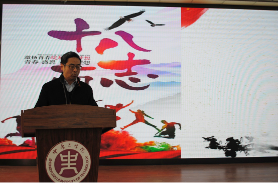 接着,刘卫光上台为成人员工致辞。他对同学们提出树立正确三观的要求,并表达了对殷切期望与美好祝愿。