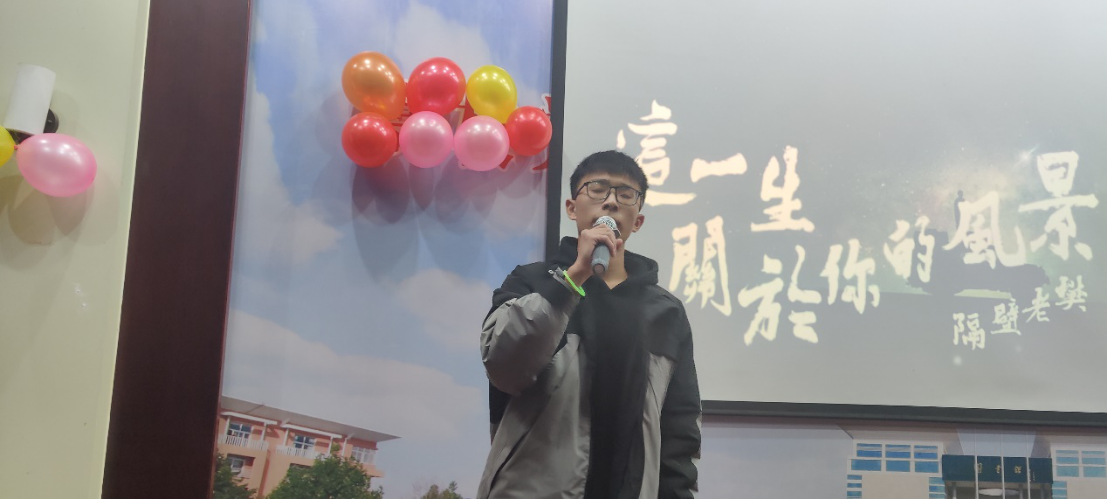 借此机会,杨东梅老师为获得新生杯篮球比赛冠军的同学们颁奖。节目开始,吉他社星期五乐队演唱了《杀死那个石家庄人》。一班、二班的同学们也相继展示了他们各自准备的节目。同学们在感受歌曲细腻感情的同时,也体验了诗歌、散文等文学韵味和舞蹈的魅力以及相声带来的欢乐。节目过后还有成语接龙,穿越呼啦圈等游戏环节。最后,文艺晚会在同学们的欢呼声中落下帷幕。